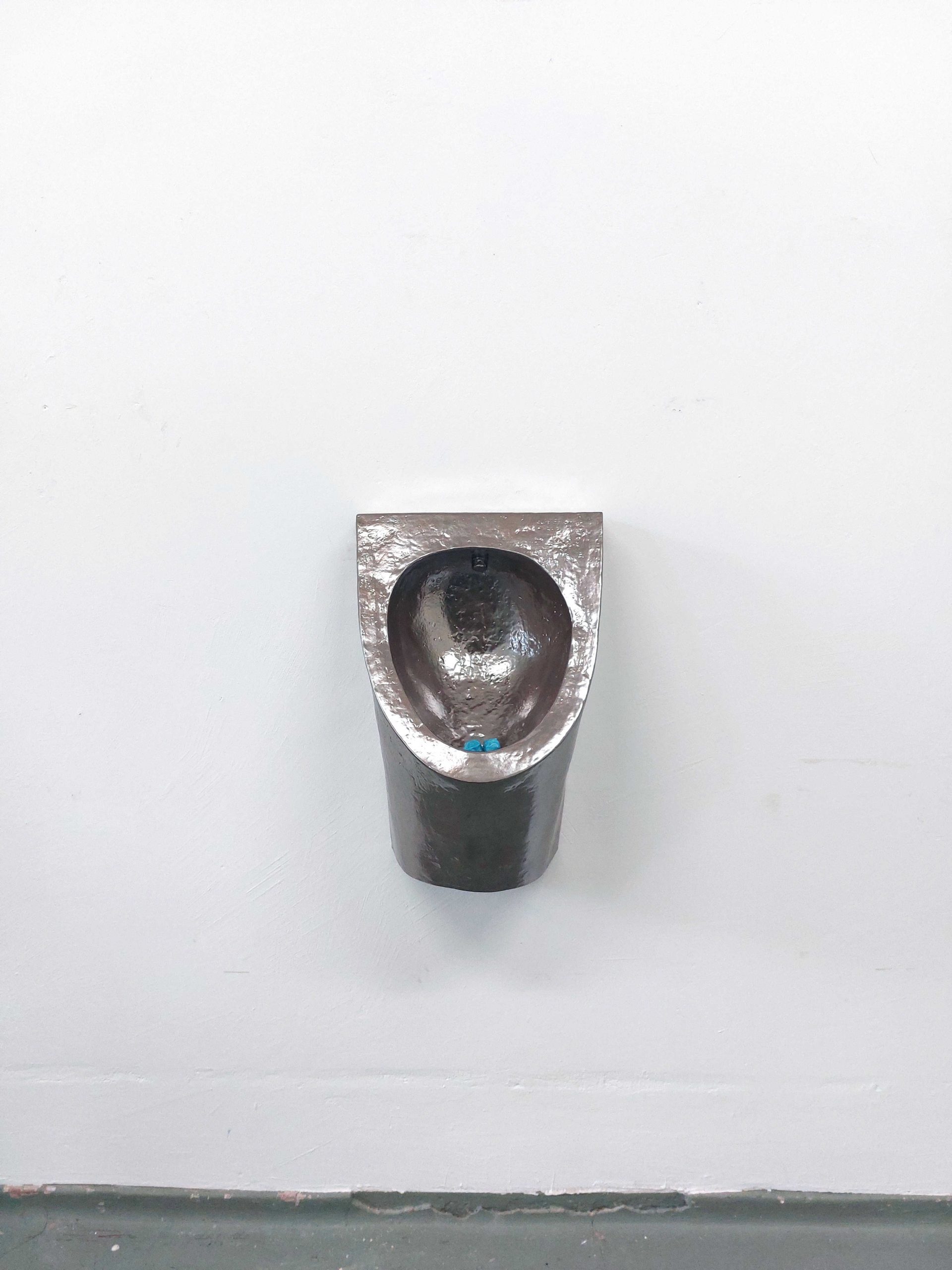Gemeinschaftsdusche, 2025, glasierte Kacheln auf Holz und glasierte Keramik Foto: Johannes BendzullaGroßes Gitter (Taksim), 2025, Tusche auf Papier, 250 x 350 cmPissoir, 2025, 55 x 37 x 30 cm, glasierte KeramikSchild, 2025, glasierte Keramik, 57 x 30 x 30 cm, Foto: Johannes BendzullaHair Tonic, Foto: Simon VogelSeifenschale, GemeinschaftsduscheWischmop, 2025, Keramik, Foto: Johannes BendzullaSchwarze Cap, Krummer Nagel, 2025 glasierte Keramik, Foto: Johannes BendzullaSchwarzer Jockstrap, glasierte Keramik, Foto: Johannes BendzullaBlack Speedo, 2024, 23 x 33 x 3 cm, glazed ceramic, Foto: JMR-DokumentationSporthose, 2024, 8 x 42 x 35 cm, glasierte Keramik, Foto: JMR-Dokumentation